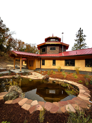 Winner of the 2025 USHBA Hempcrete Building of the Year Award, the Nonagon stands as a landmark achievement in sustainable architecture and natural building innovation. Designed and Developed in collaboration with Rjika Timberframes, the project was envisioned as a celebration of craftsmanship and artistry, bringing together natural materials, structural innovation, and time-honored joinery. At the time of its completion, the Nonagon stood as the largest permitted hempcrete building on the West Coast, spanning over 3,800 square feet. Designed as both a residence and a place of business, this remarkable structure integrates hemp-lime construction with artisanal detailing and traditional timber framing to push the boundaries of natural building.